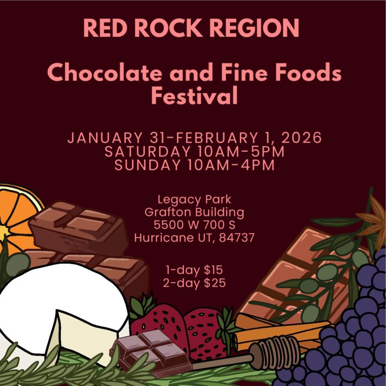Red Rock Chocolate and Fine Food Festival Saturday, January 31 - Sunday, February 1, 2026 Time All-Day Cost $15 Location Grafton Building Organizer Jacob Potter redrockchoc@gmail.com 435-253-5852 More Information